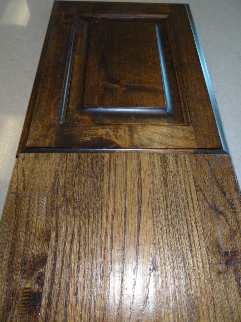 Cabinets by Hardwood flooring also stained Antique Brown