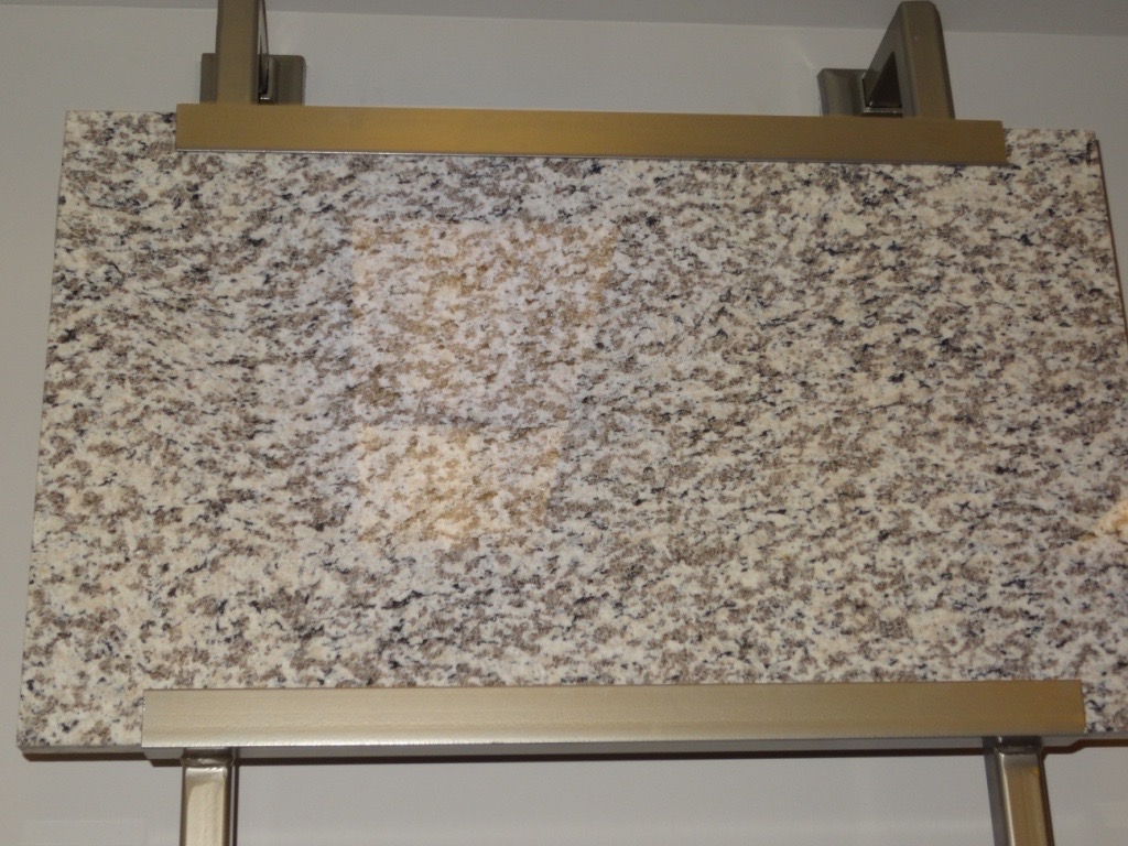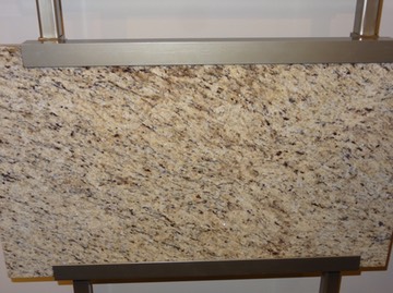 - Giallo Santos Granite from Brazil is used for the Kitchen countertops, Master Bath vanity, and Powder Room vanity. (Some photos make this granite appear more yellow than it is)